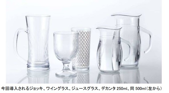 2018年、同社はガラス製食器の破損によるけがをなくすことなどを目的に、樹脂製食器を導入している。新しい食器は米Eastman Chemical社が製造するコポリエステル樹脂が原料で、食器・雑貨などを手掛ける石川樹脂工業(石川県加賀市)が製造している。樹脂製のジョッキ、ワイングラス、ジュースグラス、デカンタを導入したことで、ガラス製品使用時に比べ、年間約50トンの廃棄削減を実現したという。