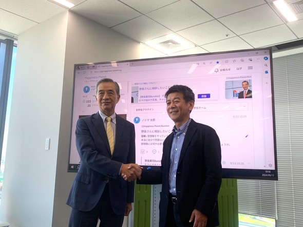 社長の分身の正式名称は「Bunshin×野島廣司」。社内向けの人材育成やコミュニケーションツールとしての活用を想定し、2020年設立の日立製作所子会社、ハピネスプラネット(東京都国分寺市)と共同で開発した。