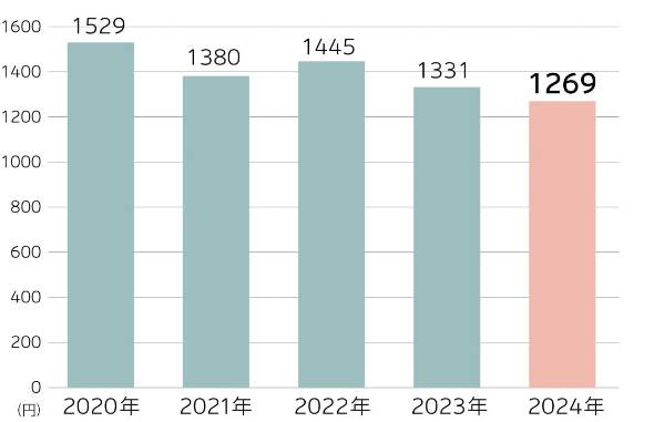 健康のための「商品」に掛けている1カ月あたりの金額は1269円(2023年は1331円)だった。直近5年間で最も少ない結果となっている。