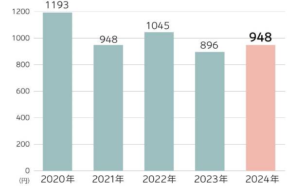一方、健康のための「サービス」に掛けている1カ月あたりの金額は948円(2023年は896円)だった。