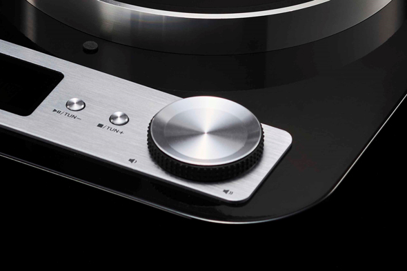 筐体には、共振に強いMDF(Medium Density Fiberboard:中密度繊維板)材を使用。表面は光沢感のあるピアノブラック仕上げ、操作パネルにはアルミ削り出し材を採用することで「大人のオーディオとして置いているだけでも様になるデザイン」としている。