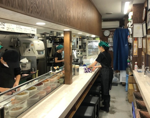 最近では希望者が多すぎて、最低でも1年以上待ってもらっている状況にあるとか。どのくらい修業すれば免許皆伝という決まりはないが「少なくとも1カ月は必要」と右近氏は話す。2〜3年はみっちりと修業する人が多いようで、長い人は20年ほど働いているという。休業日の月曜には、従業員を対象におにぎり教室を開いて、つくり方を教えている。ぼんごの具材は57種類もある。握るだけでなく、具材の仕込みも、ともなれば簡単でないだろう。