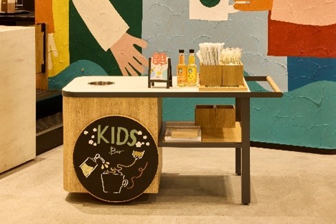同店の特徴は「店舗内の内装、備品が子連れ客を対象に作られている」「ベビーカーが2台すれ違える導線が確保されている」「キッズ向けメニューがある」の3点です。
