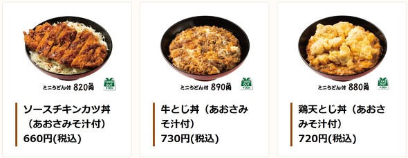 なお「かけうどん」は380円、「肉玉うどん」は720円と、価格帯は丸亀製麺やはなまるうどんとそん色なく、トッピングなどを合わせても1000円以下で満足感は高いとされる。メニュー数が豊富であることから、想定される競合はうどんチェーンだけでなくそば、牛丼、かつ丼など幅広いといえる。バリエーションが豊富という点では、松屋が近年積極的に出店している牛丼+かつ丼+カレーの複合店に近いかもしれない。