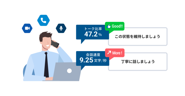 これらの数値をハイパフォーマーと比較することで「自分は早口だったのか」「話しすぎの傾向があるのか」といった気づきを営業担当者にもたらすことが可能になります。