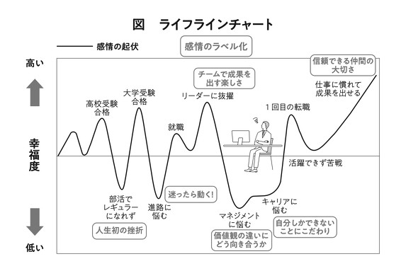 具体的なプロセスは「ライフラインチャートを書く」「感情のラベル化をする」「解釈をする」「日々、振り返る」の4つから成ります。