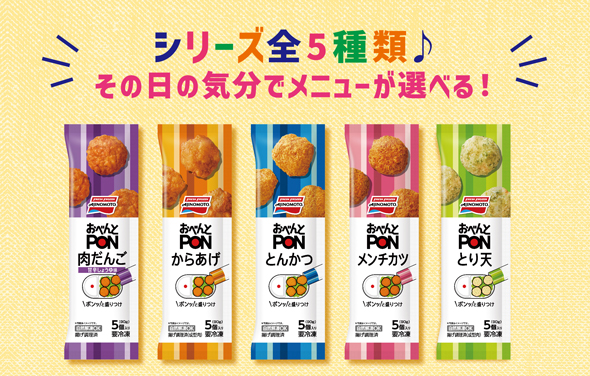 同社ではフライパンに張りつきにくく、誰でもパリッとした羽根つき餃子が焼ける冷凍「ギョーザ」を始め、冷凍食品市場で多くの商品を手掛けている。おべんとPONシリーズの売り上げはまだ小さいが、「お弁当づくりに新しい価値を提供する商品として、今後も認知を拡大していきたい」としている。
