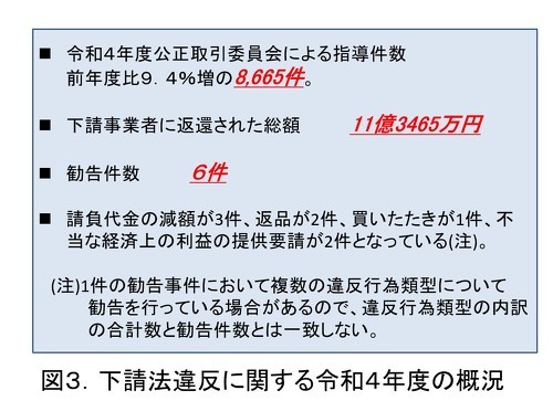 詳細の説明は省くが、下請法違反で勧告あるいは指導を受ける会社もあるので注意が必要である。(図3)