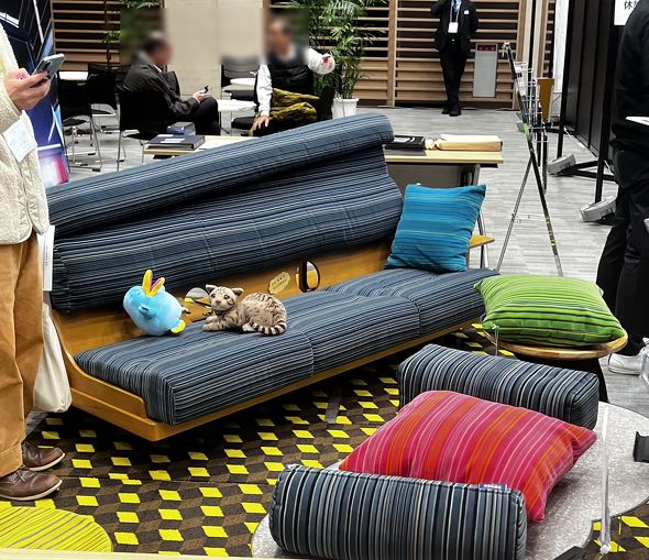 会場には、見覚えのある家具も展示されていた。JR西日本の観光車両「West Express 銀河」で使われているソファベッドだ。出展はJR西日本テクノス。鉄道ファン向けに鉄道車両の座席や布地をグッズ化する例はいくつかあるけれども、ここでは注文生産の開始が発表された。「普段鉄道車両で利用されているものを日常生活にお使いいただきたい」がコンセプトだ。