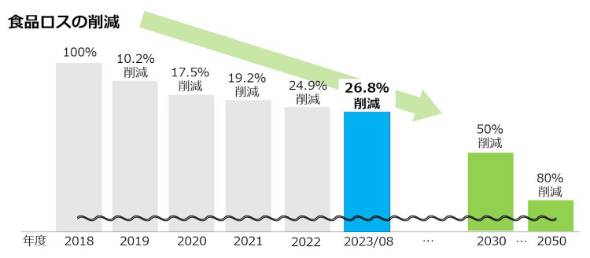そうしたなか、包装の改良による消費期限の延長や規格外の食材の活用、AIなどを活用した発注精度の向上、消費期限の迫った中食商品の割引(エコ割)などを実施して、成果を上げてきた。2023年度は2018年対比で28.9%の削減となり、2024年度は集計中だが、より上向くと予想している。