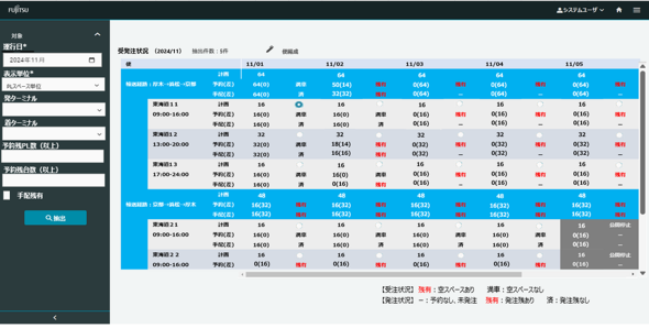 荷主側が予約管理画面で配送日、出発地、到着地、荷物情報を入力する。すると、事前に登録された物流事業者の運行計画をもとに、最適な輸送計画が作成・表示される。荷主側は、一覧表示された配送可能便の中から選んで予約できる――という仕組みだ。