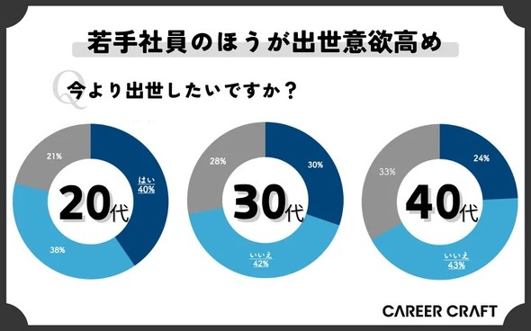 実際、若者は出世についてどのような意識を持っているのか。世代間で出世欲に差はあるのか? Webシステムの受託開発を手掛けるセルバ(東京都中央区)が、正社員の20〜40代300人を対象に調査を実施した。調査期間は1月6〜13日。