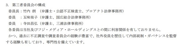 本来、社内の人間でなければ分からない諸事情や、業界特有の問題などについては、内部のコンプライアンス部門や監査部門等がしっかり調査し、別途報告すべきと考えます。今回のフジテレビだけの問題ではありませんが、第三者委員会が立ち上がったら検証は丸投げという姿勢では、再発防止など絵に描いた餅になりかねないということを付け加えておきます。