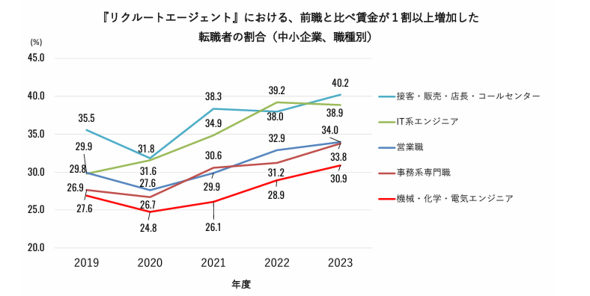 中小企業への転職で「賃金が1割以上上がった」と回答した人が2019年比で増加した。なぜか? また賃金が増えたのはどのような職種で多かったのか?