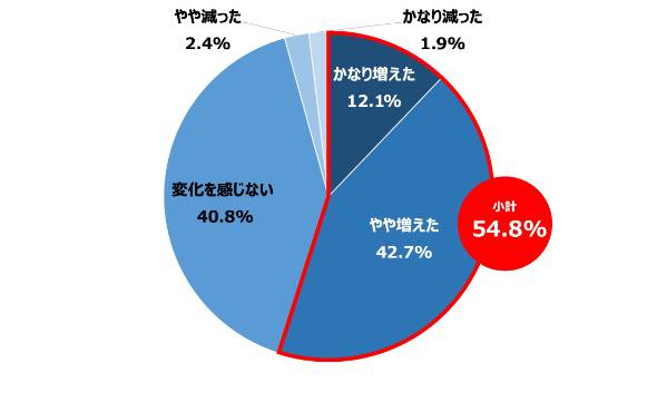 企業担当者に、2023年度に比べて「ITフリーランスエンジニアへの発注が増えたか」を尋ねた。「かなり増えた」(12.1%)、「やや増えた」(42.7%)と、合わせて54.8%が「増えた」と回答。一方「変化を感じない」は40.8%、「やや減った」は2.4%、「かなり減った」は1.9%だった。企業のDX推進が進む中、フリーランスのITエンジニアに対するニーズは拡大傾向にあるようだ。