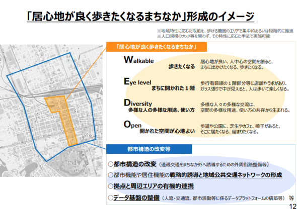2019年に国土交通省が発表した提言「『居心地が良く歩きたくなるまちなか』からはじまる都市の再生」(PDF)では、以下4点のキーワードが提示されています。