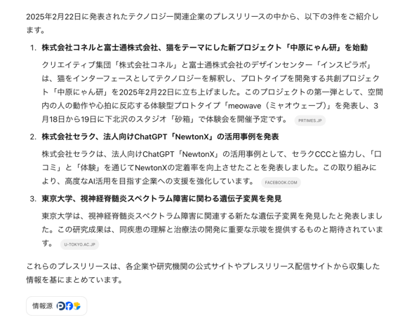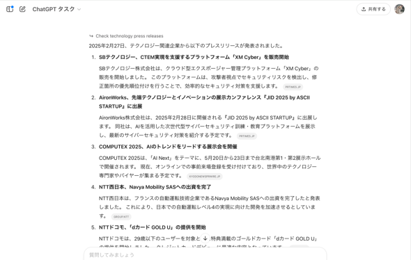 今回は、テクノロジー関連企業が公開したプレスリリースを収集するためのタスクを作成した。