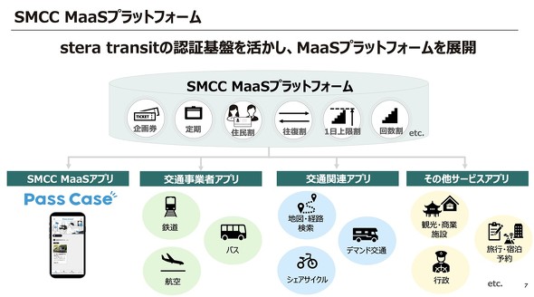 三井住友カードのTransit事業推進部長石塚雅敏氏は「さまざまなアプリに、同じ方法でサービス展開をしていきたい」と説明する。Pass Caseは三井住友カードが展開するショーケース的なアプリとして位置付けられており、自社アプリを持つ交通事業者は、そのアプリからstera transitに接続してMaaSサービスを提供できる。また、自社アプリを持たない事業者はPass Caseを活用することも可能だ。石塚氏は「各事業者の戦略はさまざまで、自社のアプリの接点がメインである事業者もあれば、逆に自社にアプリをそもそも持っていないという事業者もある」とし、各事業者に合わせた展開を支援する。