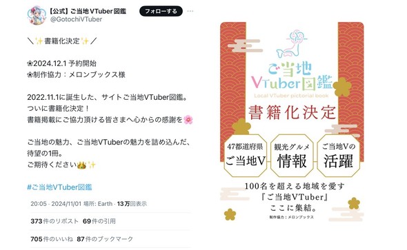「ご当地VTuber図鑑」の書籍化については、Webサイト立ち上げ時からの夢だったという。2023年から、さまざまな出版社に書籍化の企画を持ち込み、その中でアニメ・コミック・ゲーム関連商品の販売チェーン店を運営するアニメイトが興味を持ち、子会社のメロンブックスから協力を得られた。