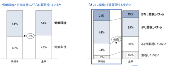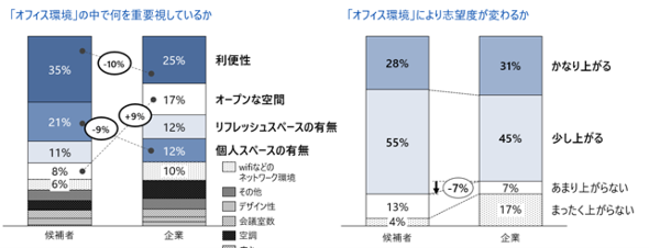 オフィス環境が魅力的であることが、採用の競争優位を決める一つのファクターであるといえるが、企業と求職者の認識にギャップがあることも分かった。