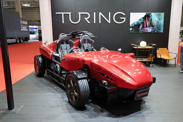 独自の自動運転システムを開発しているベンチャー、TURINGは2023年のジャパンモビリティショーにスポーツカーと自動運転を組み合わせたコンセプトモデルを出品。自分で運転する時にはスポーティなハンドリングを楽しみ、それ以外では自動運転で快適に安全に移動するコンセプトだ。これも自動運転で提供できるUXの一種といえないだろうか(筆者撮影)