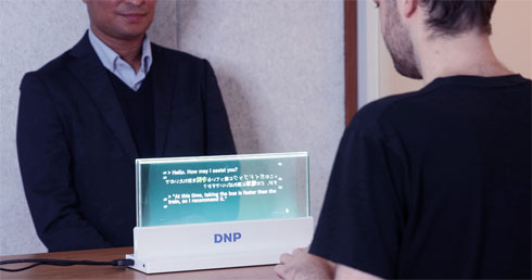 レジには、リアルタイムで翻訳表示が可能なDNPの対話支援システムを導入する。同システムは、対話の音声をリアルタイムで文字に変換し、透明ディスプレイに表示することで、多言語での接客対応が可能となる。