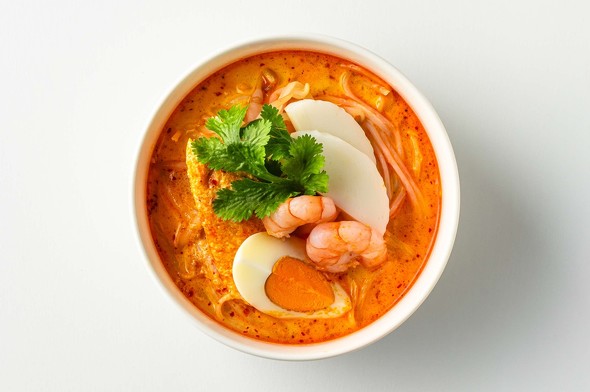 苦労したのは日本人とシンガポール人との味の好みの違いだ。例えば、ココナッツミルクをベースにスパイスの辛みをきかせた濃厚なスープが特徴の麺料理「ラクサ」は、本来その上に「ラクサリーフ」というハーブを乗せるのが一般的。しかし、ラクサリーフはドクダミのような独特の苦みと香りがあり、日本人にはなじみづらいと判断した。その代わりにパクチーをトッピングすることにしたという。