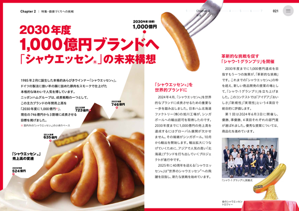 日本ハムが手掛けるウインナーブランド「シャウエッセン」が好調だ。2024年3月期には売上高760億円を達成。2030年3月期までに1000億円達成を目指している。