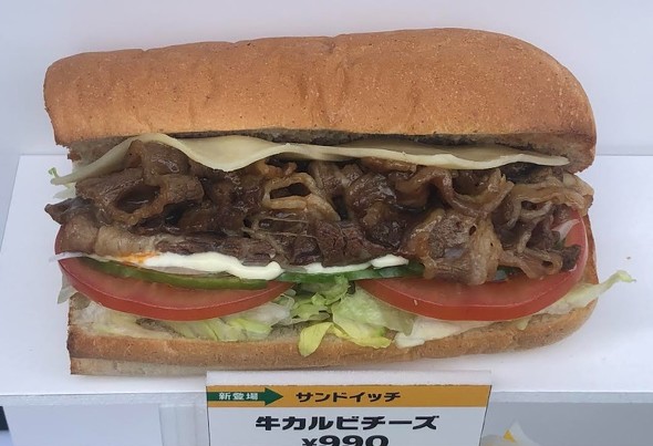 さて、今回サブウェイがディナー対策として提案したサンドイッチの新商品が「牛カルビチーズ」(990円)だ。「焼肉の和民」のノウハウを詰め込んでおり、肉にかかった濃いめのタレの味が、ビールなどの酒と合いそうだ。