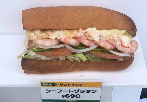 もう1品「シーフードグラタン」(690円)は、居酒屋「和民」とのコラボメニュー。人気商品であるカニマヨ入りの「和民サラダ」をアレンジして、海老も入ったシーフードグラタンをサンドイッチにした。こちらは女性をターゲットに開発している。