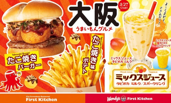 ハンバーガーチェーンの「ウェンディーズ・ファーストキッチン」と「ファーストキッチン」では、万博開催で盛り上がる大阪に注目。3月27日から「大阪うまいもんグルメ」として4品を、一部を除く全国店舗で販売している。