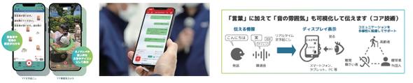 YYSystemは、主に聴覚障がいのある人を対象に、AIを活用して声や音を可視化し意思疎通を支援するアプリだ。生活環境音をイラストや文字で表示したり、会話をリアルタイムで文字化したりすることができる。31カ国語に対応したリアルタイム翻訳に加え、騒がしい環境下でも高精度な音声認識が可能。ホテル業界や新交通ゆりかもめの一部駅窓口などでの導入実績がある。