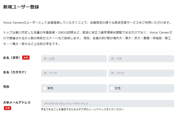 ボイスキャリアを利用するには、会員登録が必須となっている。会員登録時には大学専用のメールアドレスを入力する必要があり、学生しか登録できないようにしている。投稿された音声は全て匿名加工され、会員のみが聞ける仕組みだ。