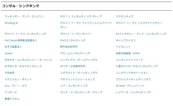 一方、企業名や選考年次、面接形式などは会員登録なしでも閲覧可能。アクセンチュアやキーエンス、三菱商事など、業界ごとに企業名が一覧になっている他、新しい音声が追加されると新着情報として表記されている。