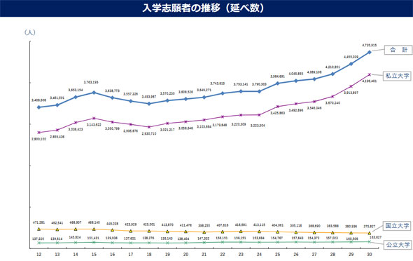 新しく大学ができたり、学部が増えたりすれば、部数が伸びることもあるが、学校によっては試験内容を統一することもあるので、それほど部数が伸びないこともある。
