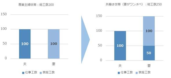 しかし、「共働き家庭」では妻にも仕事工数がかかります。