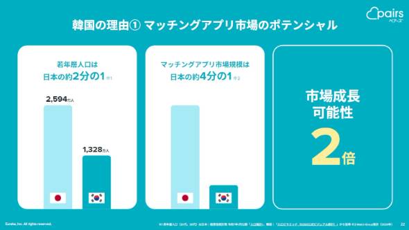ユーザー数を増やし、より多くの人に価値を届ける目的で、ペアーズは2025年春からアジア展開を開始。3月6日に韓国でのサービス提供を始めた。2017年にも韓国に進出したが、時期尚早だったために撤退した経緯がある。なぜ、このタイミングでの再参入だったのか。