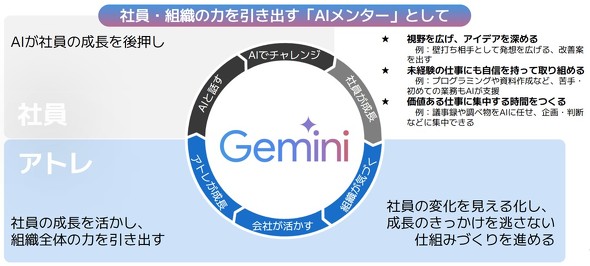 アトレは6月24日、Googleの生成AI「Gemini」を全社的に導入し、独自のAI活用戦略「AIメンター」を開始したと発表した。