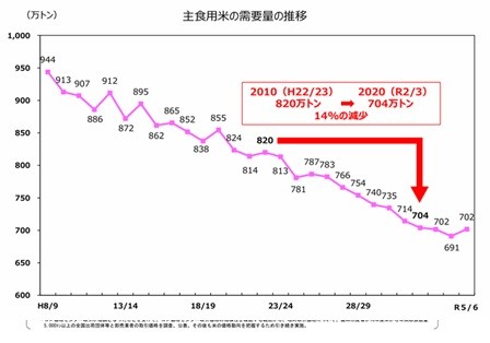 では、日本人のコメ需要や消費実態はどのような推移をたどっているのでしょうか。