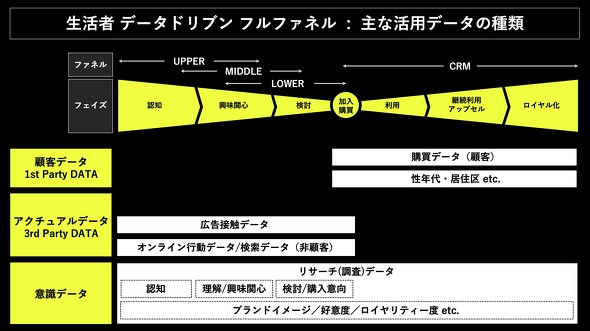 アンケートなどを通じて、顧客の満足度やロイヤリティー、つまり行動の根本にある「なぜ」を探るデータ。隠れた不満や期待をとらえる。