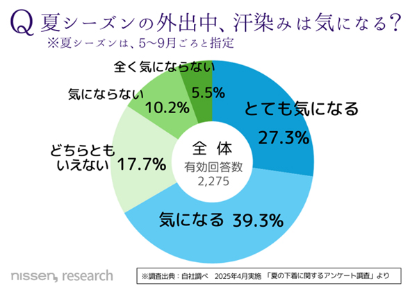 2025年4月に実施した自社調査(回答数2275件)では、66.6%の人が「汗染みがとても気になる」「気になる」と回答。消費者の悩みがはっきりと浮かび上がった。
