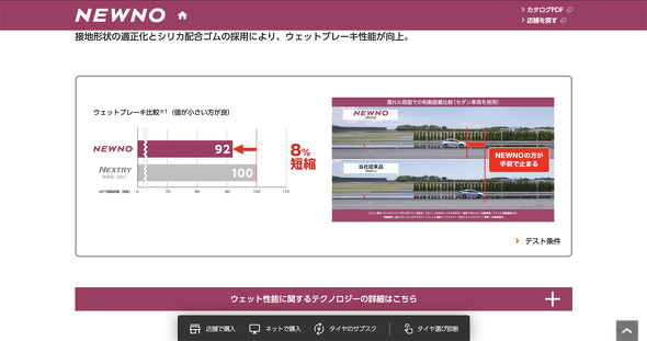 価格を優先する向きにブリヂストンが提案しているのが、スタンダードタイヤであるNEWNOだ。これは同社の最新タイヤ設計技術を用いて開発され、主にアジア圏で生産することで低価格を実現している。