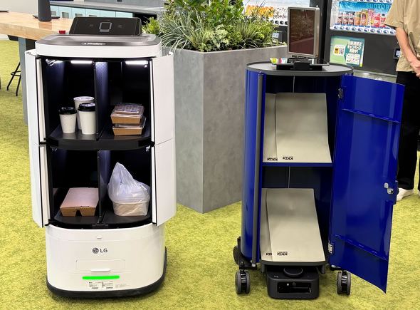 新オフィスの特徴の一つが、自動走行ロボットの活用である。エレベーターやセキュリティゲートと連携し、社内便や、社食、オフィス内ローソンの商品、来客用の飲料などを配送する。ローソン配送ロボット10台、社内便配送ロボット5台に加え、8月からは社食配送ロボット4台を導入する予定だ。こうしたロボットの導入により、社員が創造的業務に集中できる環境を整えるとしている。