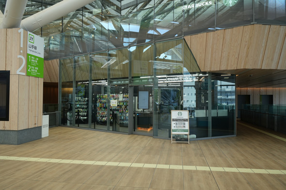 高輪ゲートウェイ駅構内にあるTOUCH TO GOの店舗を訪れた。天井には至る所にカメラを設置してあるが、それ以外は普通のコンビニと同じような店舗だ。