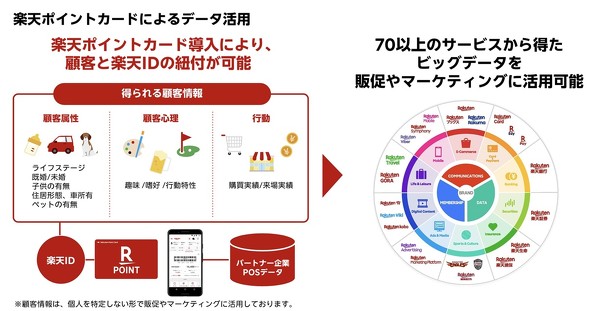 楽天の最大の特徴は、オンラインで蓄積したデータ基盤にある。楽天市場を持つ楽天は「インターネット経由でコミュニケーションできる顧客数が圧倒的に多い」(林氏)からだ。TSUTAYAの会員カードから始まったTポイント、ローソンを中心に展開したPontaとは、データの出発点が異なっている。