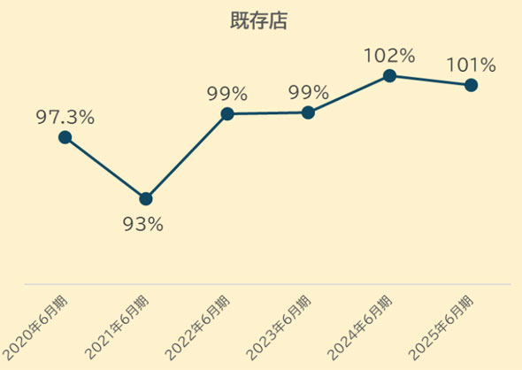 実は、全体としては成長していますが、ディスカウントストアやGMSでは既存店の客数が伸び悩んでおり、既存店ベースの客数伸び率は、前年同月比で2024年6月期が102%、2025年6月期は101%程度にとどまり、微増にとどまっています。コロナの影響もあり、2020年6月期〜23年6月期までの伸び率は前年を下回っていることから、この数年で「やっと元通りになった」という見方のほうが正しいでしょう。