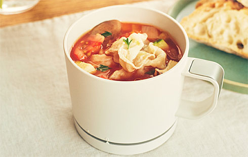 スプーン発売後、「スプーン以外の形態もほしい」といった声や、スプーンを使わずに汁物を食べる習慣のある人々のニーズを受け、「エレキソルト カップ」を新たに開発。また、エレキソルト スプーンにも利用者の声を反映し、小型化や食洗機対応など改良を加え、リニューアルした。