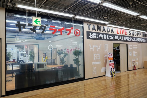 1階には、同社初のライブ配信スタジオ「ヤマダライブスタジオ」を設置。商品情報やメーカーとのコラボ企画などを発信し、配信中に紹介された商品をそのまま購入することもできるようにした。