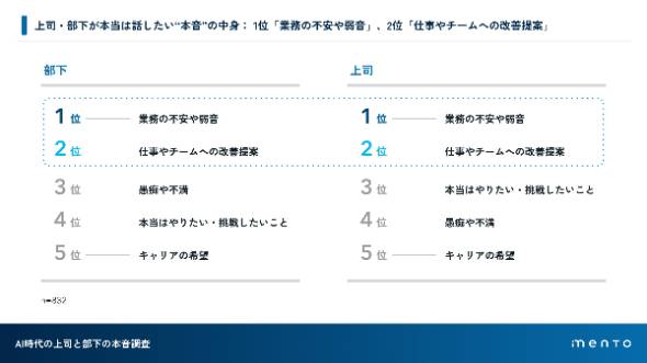 部下の9割が「AIに本音を言いやすい」 調査で浮かぶ1on1の壁:mento調べ(2/2 ページ)