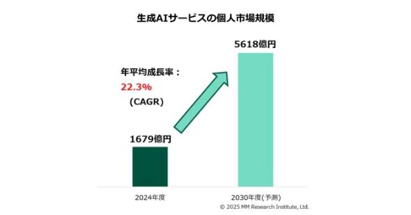 生成AIの個人市場が急成長 金額規模「年平均22.3%」で成長:MM総研の調査(1/2 ページ)